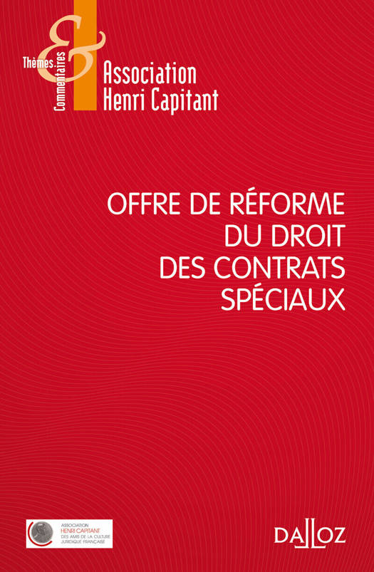 Le droit commun des contrats a fait l'objet d'une réforme profonde par l'Ordonnance du 10 février 2016. Il est désormais impérieux de réformer les règles applicables aux contrats spéciaux. C'est la raison pour laquelle l'Association Henri Capitant a remis à la Chancellerie, le 26 juin 2017, un avant-projet de réforme du droit des contrats spéciaux.