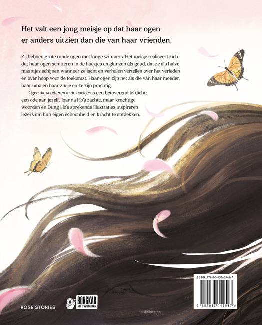 Ogen die schitteren in de hoekjes is een betoverend lofdicht: een ode aan jezelf. Joanna Ho's zachte, maar krachtige woorden en Dung Ho's sprekende illustraties inspireren lezers om hun eigen schoonheid en kracht te ontdekken.