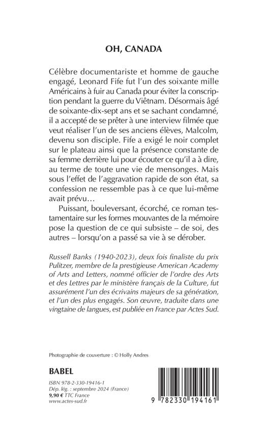 Célèbre documentariste et homme de gauche engagé, Leonard Fife fut l'un des soixante mille Américains à fuir au Canada pour éviter la conscription pendant la guerre du Viêtnam. Désormais âgé de soixante-dix-sept ans et se sachant condamné, il a accepté de se prêter à une interview filmée que veut réaliser l'un de ses anciens élèves, Malcolm, devenu son disciple. Fife a exigé le noir complet sur le plateau ainsi que la présence constante de sa femme derrière lui pour écouter ce qu'il a à dire, au terme de toute une vie de mensonges. Mais sous l'effet de l'aggravation rapide de son état, sa confession ne ressemble pas à ce que lui-même avait prévu... Puissant, bouleversant, écorché, ce roman testamentaire sur les formes mouvantes de la mémoire pose la question de ce qui subsiste - de soi, des autres - lorsqu'on a passé sa vie à se dérober.