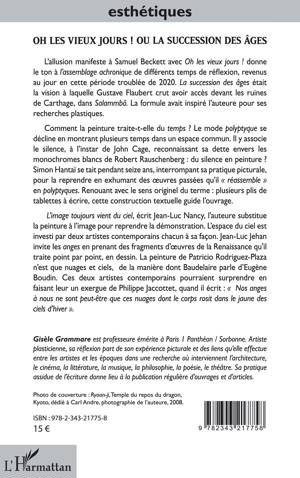 L'allusion manifeste à Samuel Beckett avec Oh les vieux jours ! donne le ton à l'assemblage achronique de différents temps de réflexion, revenus au jour en cette période troublée de 2020. La succession des âges etait la vision à laquelle Gustave Flaubert crut avoir accès devant les ruines de Carthage, dans Salammbô. La formule avait inspiré l'auteure pour ses recherches plastiques. Comment la peinture traite-t-elle du temps ? Le mode polyptyque se décline en montrant plusieurs temps dans un espace commun. Il y associe le silence à l'instar de John Cage, reconnaissant sa dette envers les monochromes blancs de Robert Rauschenberg : du silence en peinture ?