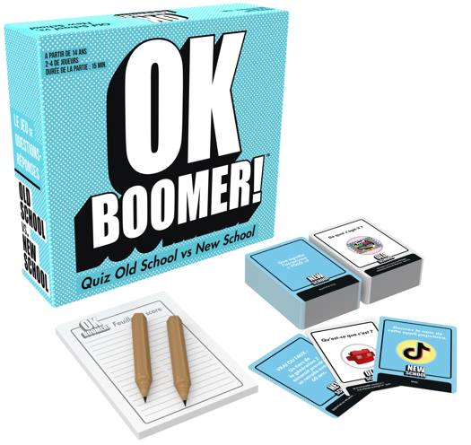 In dit trivia-spel nemen jongeren het op tegen de 'oude rotten'! Test je kennis van de populaire cultuur van de generatie van je tegenstander. Speel in teams op basis van generatie, of ga individueel als je leeftijdsgroep gelijk is. Inclusief 220 kaarten met vier soorten vragen, zodat je keer op keer kunt spelen.