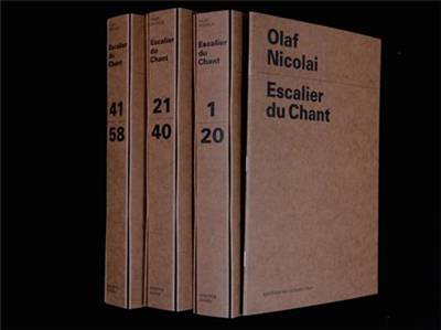 How can songs reflect political events? How does a song become a political song? The artist Olaf Nicolai invited eleven international composers to write songs that reference political events which were of current relevance to them. Without prior announcement, a total of 58 songs were performed as a-cappella pieces on twelve Sundays in 2011 on the central staircase of the Pinakothek der Moderne in Munich. Visitors to the museum found themselves as actors in a staged performance for brief instances of time. The publication Escalier du Chant presents excerpts from the songs and commentaries by the composers in the form of 58 music sheets; the accompanying booklet contains various photographs of the performances. Includes songs by Tony Conrad, Georg Friedrich Haas, Georg Katzer, Liza Lim, Samir Odeh-Tamimi, Enno Poppe with Marcel Beyer, Rolf Riehm, James Saunders, Elliott Sharp, Mika Vainio, Jennifer Walshe.