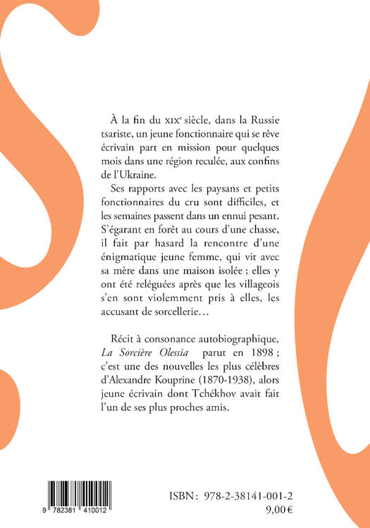 Récit à consonance autobiographique, La Sorcière Olessia parut en 1898; c’est une des nouvelles les plus célèbres d’Alexandre Kouprine (1870-1938), alors jeune écrivain dont Tchékhov avait fait l’un de ses plus proches amis.