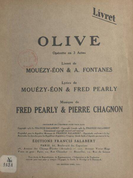Opérette en 3 actes (livret seul)