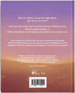 Ollie de olifant wil nog niet gaan slapen. Wat als hij iets mist? Dit boek helpt peuters en kleuters op een speelse en geruststellende manier begrijpen waarom nachtrust zo belangrijk is voor lichaam én geest.