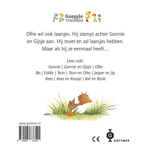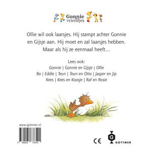'Ollie wil ook' is een peuterboekje in de serie 'Gonnie en vriendjes' van Olivier Dunrea. Ollie heeft een eigen willetje en een hele duidelijke mening, en dat durft hij te laten zien ook! Ollie wil ook laarsjes, net als Gonnie en Gijsje. Hij stampt net zo lang achter Gonnie en Gijsje aan tot hij zijn zin krijgt. Maar als hij ze dan eenmaal heeft...