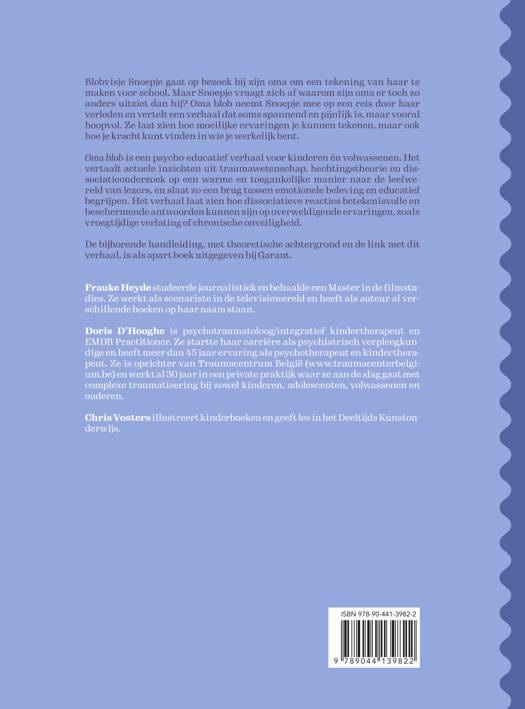 Oma blob is een psycho-educatief verhaal voor kinderen én volwassenen. Het vertaalt actuele inzichten uit traumawetenschap, hechtingstheorie en dissociatieonderzoek op een warme en toegankelijke manier naar de leefwereld van lezers, en slaat zo een brug tussen emotionele beleving en educatief begrijpen. Het verhaal laat zien hoe dissociatieve reacties betekenisvolle en beschermende antwoorden kunnen zijn op overweldigende ervaringen, zoals vroegtijdige verlating of chronische onveiligheid.