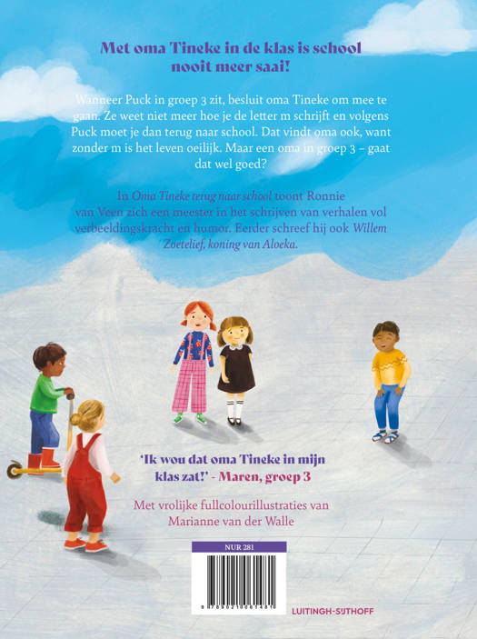 Wanneer Puck in groep 3 zit, besluit oma Tineke om mee te gaan. Ze weet niet meer hoe je de letter m schrijft en volgens Puck moet je dan terug naar school. Dat vindt oma ook, want zonder m is het leven oeilijk. Maar een oma in groep 3 - gaat dat wel goed? Als oma Tineke haar broodtrommel vergeet, belt ze de pizzabrommer, ze belandt bijna in het vijvertje vol piranha's van conciërge Knalbloem, en ze haalt een wildvreemde invalkracht van straat die de kinderen een horrorfilm over een eenhoorn wil laten zien. Eén ding is zeker: met oma Tineke is school allesbehalve saai!