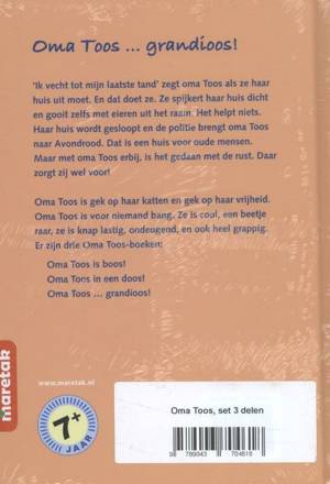 Oma Toos is gek op haar katten en gek op haar vrijheid. Is er een probleem, oma Toos weet een oplossing! Oma Toos is voor niemand bang, ze is cool, een beetje raar, ze is knap lastig, grappig, maar soms ook ondeugend.