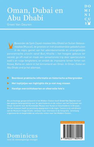 Ontdek Oman en de emiraten Abu Dhabi en Dubai op vakantie met deze Dominicus-reisgids en verken drie unieke plekken vol imposante cultuur en natuur. In Oman zijn het authentieke en traditionele verweven met een vleugje luxe. Dubai en Abu Dhabi zijn bruisende oorden aan de Perzische Golf met schitterende hotelpaleizen en onvoorstelbare shopmogelijkheden. Al eeuwenlang is de regio een handelscentrum tussen Oost en West. Nu liggen moderne wereldsteden naast eeuwenoude stadjes en verstilde lemen dorpen, en kamelen en limousines kruisen elkaar op de weg. Ook het landschap biedt variëteit: het noorden is bergachtig met valleien en oases, de zuidelijke vruchtbare uitlopers van het Hajjargebergte worden omringd door eindeloze grindvlakten en zandwoestijnen, terwijl je aan de kusten prachtige stranden en rotsbaaien vindt. Voor een unieke vakantie vol avontuur ben je hier aan het juiste adres. Beleef met deze reisgids dé ultieme vakantie in Oman, Dubai en Abu Dhabi. Deze reisgids staat boordevol praktische informatie, historische achtergronden, handige overzichtskaarten, sfeervolle foto's en uitgebreide culturele achtergrondinformatie, is altijd up-to-date en geschreven door een Nederlandstalige expert.