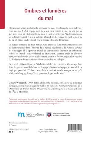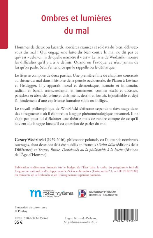 Hommes de dieux ou laïcards, sorcières cramées et soldats du bien, délivrez-vous du mal ! Qui engage une lutte du bien contre le mal ne dit pas ce qu’est celui-ci, ni de quelle manière il est. Cet ouvrage montre les difficultés pour le définir. Quand on l’évoque, ce n’est jamais de lui qu’on parle. Seul s’entend ce qui le rappelle ou le démarque. Une première partie est consacrée au thème du mal dans l’histoire de la pensée occidentale, de Platon à Levinas et Heidegger. Il y apparaît moral et démoniaque, humain et inhumain, radical et banal, transcendantal et immanent, comme excès et absence, paradoxe et absurde, crime et châtiment, destin et fortuit, injustifiable et déjà là, fondement d’une expérience humaine subie ou infligée. Le travail philosophique de Wodzinski s’effectue cependant davantage dans des fragments où il élabore un langage phénoménologique personnel. Il ne s’agit pas pour lui d’élaborer une théorie mais de rendre compte de ce qu’il advient du langage lorsqu’il est question de parler du mal.
