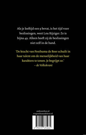 Haar vader is dood, haar huis is leeg en bij de krant is ze uitgerangeerd. Als je leeftijd een 9 bevat, is het tijd voor beslissingen, weet Lou Rijziger. Ze is 49. Alleen heeft zij de controle niet. Vlak na het overlijden van haar vader stopt haar column bij de krant – de krant waar haar vader ook voor werkte. De chef biedt haar een baan aan bij het necrologieënarchief, waar ze de taak krijgt het archief op te schonen. Een ondankbare klus, denkt ze. Maar ze raakt gefascineerd door het genre, en komt het laatste verhaal van haar vader op het spoor. Het leidt naar Spanje. Lou besluit het te gaan afmaken. Met haar kat Broer, de 6-jarige Emmy en een zakje met as van haar vader begint ze aan een roadtrip naar het zuiden. Over Omdat ik je zie: 'Vlot geschreven pageturner, waarin Posthuma de Boer de personages met veel empathie tot leven wekt.'- Trouw 'Omdat ik je zie is Eva Posthuma de Boers beste roman tot dusver.' - HP/De Tijd