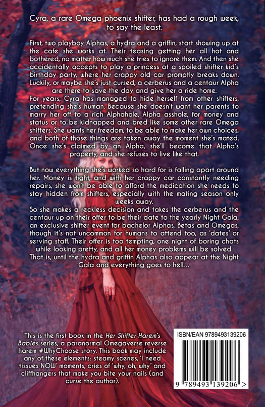 So she makes a reckless decision and takes the cerberus and the centaur up on their offer to be their date to the yearly Night Gala, an exclusive shifter event for bachelor Alphas, Betas and Omegas, though it’s not uncommon for humans to attend too, as ‘dates’ or serving staff. Their offer is too tempting, one night of boring chats while looking pretty, and all her money problems will be solved.