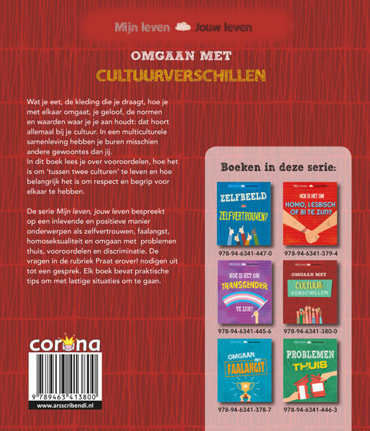 Wat je eet, de kleding die je draagt, hoe je met elkaar omgaat, je geloof, de normen en waarden waar je je aan houdt: dat hoort allemaal bij je cultuur. In een multiculturele samenleving hebben je buren misschien andere gewoontes dan jij. In dit boek lees je over vooroordelen, hoe het is om ‘tussen twee culturen’ te leven en hoe belangrijk het is om respect en begrip voor elkaar te hebben.