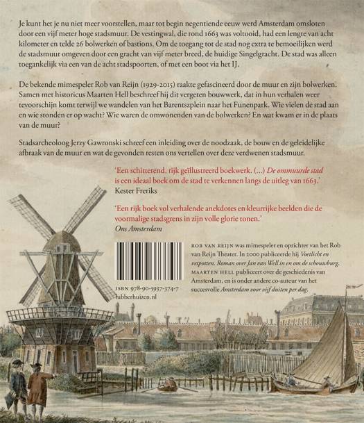 Het is nu moeilijk voor te stellen, maar in 1663 was Amsterdam omsloten door een vijf meter hoge stadsmuur. De acht kilometer lange vestingwal telde 26 bolwerken en 8 stadspoorten langs de huidige Singelgracht. Hier en daar zijn in de stad nog sporen te vinden. De muur diende als verdedigingslinie en werd omgeven door een zestig meter brede gracht. Op de bolwerken stonden zware kanonnen en vanwege de ligging aan de rand van de stad waren de meeste ook voorzien van een molen. In de 19de eeuw verloren de muur en de bolwerken hun militaire functie en vanwege de stadsuitbreiding werden ze één voor één afgebroken. Daarmee verdwenen ook de molens. De bekende mimespeler en amateur-historicus Rob van Reijn raakte gefascineerd door de verdwenen vestingwal en spande zich ervoor in dat er plaquettes werden gelegd op de plekken van de voormalige bolwerken. Hij legde samen met Maarten Hell de geschiedenis ervan vast in de vorm van een wandeling op de grens van de oude en de nieuwe stad. Rob van Reijn was mimespeler en oprichter van het Rob van Reijn Theater. In 2000 publiceerde hij Voetlicht en vetpotten. Roman over Jan van Well in en om de schouwburg. Maarten Hell publiceert over de geschiedenis van Amsterdam, en schreef onder andere (samen met Emma Los) het succesvolle Amsterdam voor vijf duiten per dag.