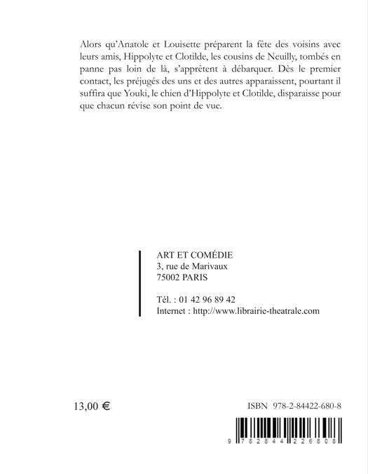 Alors qu'Anatole et Louisette préparent la fête des voisins avec leurs amis, Hippolyte et Clotilde, les cousins de Neuilly, tombés en panne pas loin de là, s'apprêtent à débarquer. Dès le premier contact, les préjugés des uns et des autres apparaissent, pourtant il suffira que Youki, le chien d'Hippolyte et Clotilde, disparaisse pour que chacun révise son point de vue.