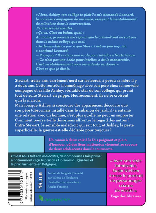 Stewart, treize ans, carrément nerd sur les bords, a perdu sa mère il y a deux ans. Cette rentrée, il emménage avec son père chez sa nouvelle compagne et sa fille Ashley, véritable star de son collège, qui prend tout de suite Stewart en grippe. Heureusement, ils ne se croisent qu'à la maison. Mais lorsque Ashley, si soucieuse des apparences, découvre que son père (désormais installé dans le cabanon de jardin !) a entamé une relation avec un homme, c'est plus qu'elle ne peut en supporter. Comment pourra-t-elle désormais affronter le regard des autres ? Entre Stewart, le sensible maladroit qui sait tout, et Ashley, la peste superficielle, la guerre est-elle déclarée pour toujours ?