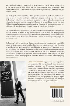 Dit boek geeft lezers een kijkje achter gesloten deuren en biedt een zeldzaam inzicht in hoe 's werelds machtigste militaire bondgenootschap met crises omgaat. Stoltenberg beschrijft de inspanningen om de navo bijeen te houden en gaat in op belangrijke kwesties, zoals de oorlog in Oekraïne, de terugtrekking van de navo uit Afghanistan, de betrekkingen met Rusland en China en de samenwerking met wereldleiders als Angela Merkel, Donald Trump en Volodymyr Zelensky.