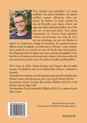 Une canicule sans précédent. Les corps souffrent, les esprits chauffent, les repères vacillent comme silhouettes dans une brume de chaleur. La foule envahit les rues de Bruxelles pour laisser éclater une rage sans objet clairement défini, si ce n'est que «ça» ne peut plus durer. Arno, jeune homosexuel, est victime d'une agression violente qui provoque une onde de choc sur son entourage, sur son ami Bastian et même sur l'inspecteur chargé de l'enquête. Un questionnement affleure entre la capitale, les Ardennes et l'Orient : notre monde, notre mode de vie, sont-ils en train de fondre dans la fournaise. Et si disparaissaient les digues que nous croyions intangibles si les barrières se brisaient sous une poussée obtuse si le plus sombre de nos mémoires revenait crever la surface en bulles pestilentielles.