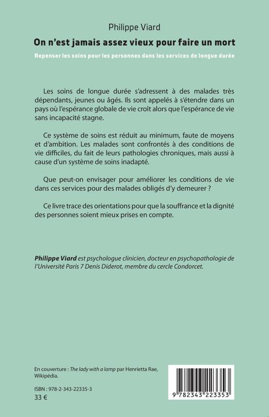 Les soins de longue durée s'adressent à des malades très dépendants, jeunes ou âgés. Ils sont appelés à s'étendre dans un pays où l'espérance globale de vie croît alors que l'espérance de vie sans incapacité stagne. Ce système de soins est réduit au minimum, faute de moyens. Les malades sont confrontés à des conditions de vie difficiles, du fait de leurs pathologies chroniques, mais aussi à cause d'un système de soins inadapté. Que peut-on envisager pour améliorer les conditions de vie dans ces services pour des malades obligés d'y demeurer ? Ce livre trace des orientations pour que la souffrance et la dignité des personnes soient mieux prises en compte.