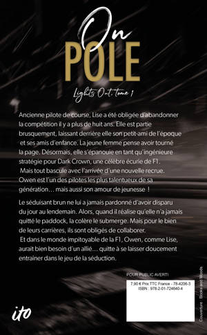 Le séduisant brun ne lui a jamais pardonné d’avoir disparu du jour au lendemain. Alors, quand il réalise qu’elle n’a jamais quitté le paddock, la colère le submerge. Mais pour le bien de leurs carrières, ils sont obligés de collaborer. Et dans le monde impitoyable de la F1, Owen, comme Lise, aurait bien besoin d’un allié… quitte à se laisser doucement entraîner dans le jeu de la séduction.