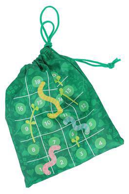 TWO CLASSIC GAMES IN ONE SET - A garden friends theme adds appeal for kids who love nature as they engage in classic gameplay. The wooden pieces and clever printing on the storage bag make it easy to play a version of Tic-Tac-Toe or Snakes and Ladders anywhere!