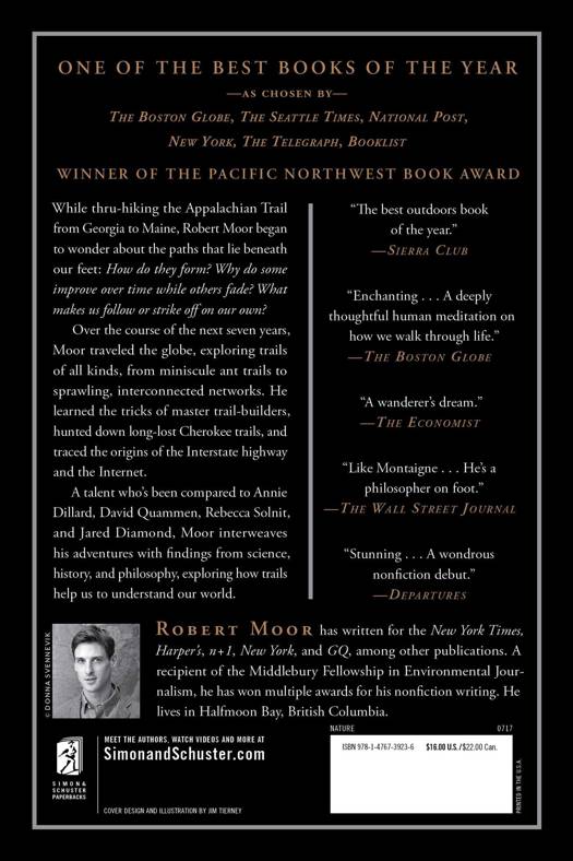 How do they form? Why do some improve over time while others fade? What makes us follow or strike off on our own? Over the course of seven years, Moor traveled the globe, exploring trails of all kinds, from the miniscule to the massive. He learned the tricks of master trail-builders, hunted down long-lost Cherokee trails, and traced the origins of our road networks and the Internet. In each chapter, Moor interweaves his adventures with findings from science, history, philosophy, and nature writing.