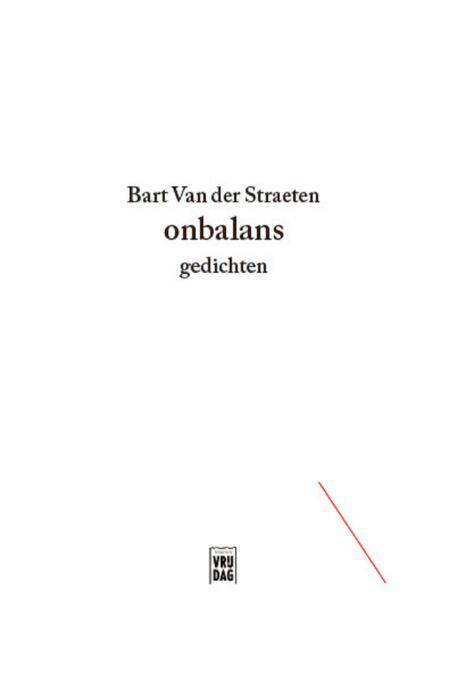Bart Van der Straeten (1979) is verbonden aan de Vakgroep Letterkunde van de Universiteit Gent. Hij schreef jarenlang reportages en kritieken voor Ons Erfdeel, Knack , De Morgen en nog veel meer dagbladen en culturele tijdschriften. Zijn gedichten verschenen in Het Liegend Konijn. Met Carl De Strycker stelde hij samen: Sculpturen. Een keuze uit het werk van Roland Jooris, dat in mei 2014 verschijnt bij Poëziecentrum. Onbalans is zijn debuut.