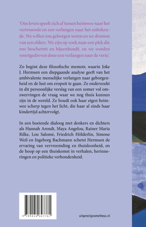 In een boeiende dialoog met denkers en dichters als Hannah Arendt, Maya Angelou, Rainer Maria Rilke, Lou Salomé, Friedrich Hölderlin, Simone Weil en Ingeborg Bachmann schetst Hermsen de ervaring van vervreemding en thuisloosheid, en de hoop op een thuiskomst in verhalen, herinneringen en politieke verbondenheid.