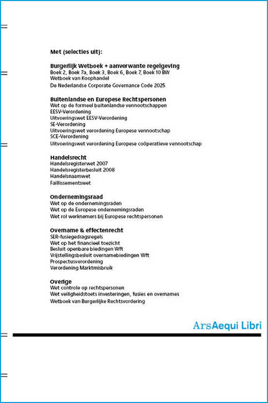 Burgerlijk Wetboek + aanverwante regelgeving Boek 2, Boek 7a, Boek 3, Boek 6, Boek 7, Boek 10 BW Wetboek van Koophandel De Nederlandse Corporate Governance Code 2025