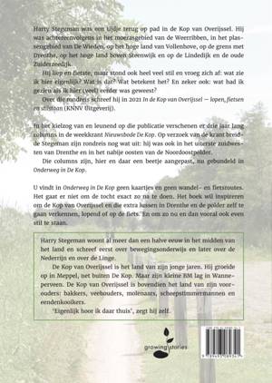 Harry Stegeman was een tijdje terug op pad in de Kop van Overijssel. Hij was achtereenvolgens in het moerasgebied van de Weerribben, in het plassengebied van De Wieden, op het hoge land van Vollenhove, op de grens met Drenthe, op het hoge land boven Steenwijk en op de Lindedijk en de oude Zuiderzeedijk. Hij liep en fietste, maar stond ook heel veel stil en vroeg zich af: wat zie ik hier eigenlijk? Wat is dat? Wat betekent het? En zeker ook: wat had ik gezien als ik hier (veel) eerder was geweest? Over die rondreis schreef hij in 2021 In de Kop van Overijssel – lopen, fietsen en stilstaan (KNNV Uitgeverij).