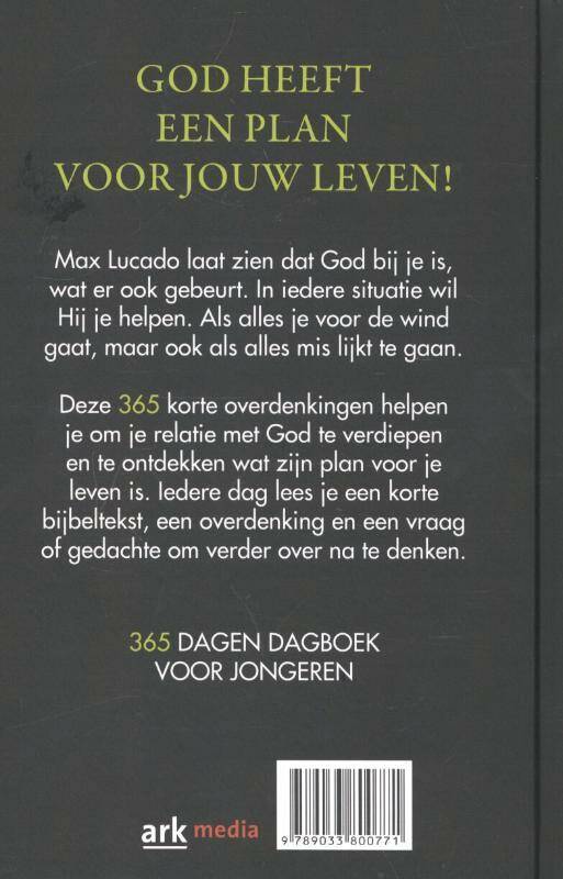Eindelijk een dagboek voor jongeren vanaf 15 jaar van Max Lucado! Pakkende stukjes, korte zinnen en een heldere boodschap. Wat Lucado doet voor volwassenen en kinderen, kan hij ook voor jongeren. Het leven voor jongeren is lang niet altijd makkelijk. Lucado wil hen aansporen om leiding, troost en bemoediging voor hun leven te zoeken in de Bijbel. Dat doet hij op aansprekende, laagdrempelige wijze met overdenkingen over vertrouwen, gehoorzaamheid maar ook wijsheid, pesten, alcohol en zelfbeeld.