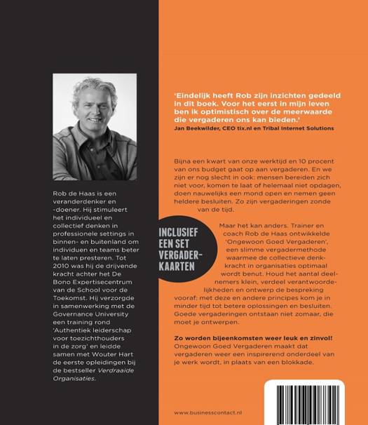 We vergaderen wat af – bijna een kwart van onze werktijd en 10 procent van ons budget gaat op aan vergaderingen. En we zijn nog slechte vergaderaars ook: we bereiden ons niet voor, komen te laat of helemaal niet, doen nauwelijks onze mond open en schuiven beslissingen voor ons uit. Zo zijn vergaderingen inderdaad zonde van de tijd. Maar het kan echt anders. Door de groep klein te houden, de verantwoordelijkheden te verdelen en de agenda vooraf doelgericht te ontwerpen kom je tot betere oplossingen en besluiten. Bovendien wordt vergaderen weer leuk en zinvol en verdwijnt het gevoel dat de vergadering je van je werk houdt.