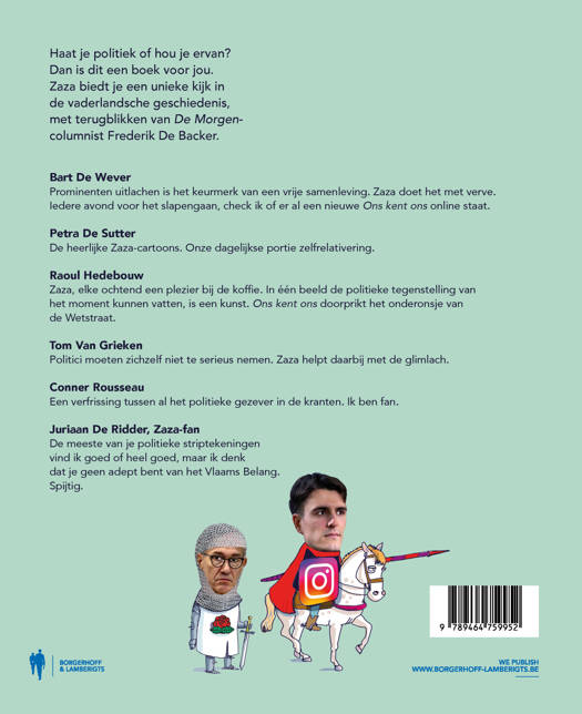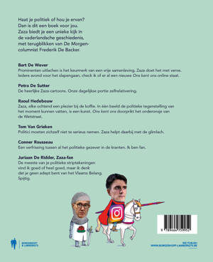 Dat er in de politiek af en toe iets fout loopt, is een open deur. Waar alles wel steeds mooi op zijn plaats valt, is in de wereld van Zaza. Als huiscartoonist van De Morgen verknipt Zaza de Belgische en internationale politieke warboel tot harmonieuze plaatjes. In deze beeldige kroniek brengt Zaza de belangrijkste gebeurtenissen van de voorbij zes jaren samen. Of het nu het jaar van de federale verkiezing was, het jaar van corona of het jaar van Poetin, Zaza is er steeds in geslaagd om onze moed – die ons bij het lezen van het reguliere nieuws weleens in de schoenen zakte – hoog te houden. Het beste medicijn tegen bitterheid is de lach, dat heeft de tekenaar goed begrepen.