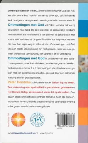 Zonder geloven kun je niet. Zonder ontmoeting met God ook niet. We zien overal hoe mensen ernaar op zoek zijn, ook binnen de kerk, in eigen ervaringen en in ervaringsverhalen van anderen. In Ontmoetingen met God wil Peter Hendriks helpen bij dit zoeken naar God. Hij doet dat door in gemakkelijk leesbare hoofdstukken alle hoofdthema's van geloven te behandelen. Met vooral veel verhalen uit de geloofstraditie. Als hulp voor mensen die daar hun eigen weg in willen vinden. Ontmoetingen met God kan een eerste kennismaking zijn met geloven, maar kan ook gelezen worden als vernieuwing, een upgrade, of ter verdieping. Ontmoetingen met God is onderdeel van een basiscursus geloven, maar kan uitstekend los daarvan gelezen worden. De basiscursus omhelst 7 + 1 ontmoetingen, die steeds worden gestart met een gezamenlijke maaltijd, gevolgd door een pakkende inleiding en een groepsgesprek.