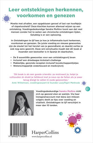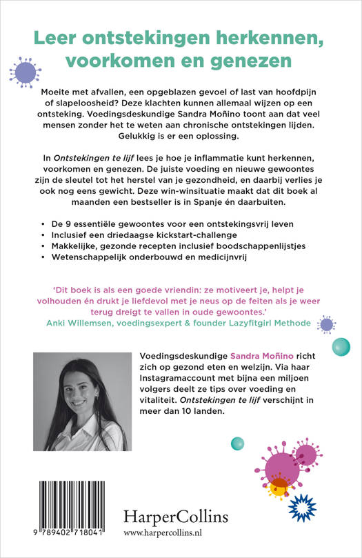 In Ontstekingen te lijf lees je hoe je inflammatie kunt herkennen, voorkomen en genezen. De juiste voeding en nieuwe gewoontes zijn de sleutel tot het herstel van je gezondheid, en daarbij verlies je ook nog eens gewicht. Deze win-winsituatie maakt dat dit boek al maanden een bestseller is in Spanje én daarbuiten.