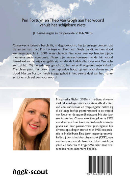 Onverwacht bezoek beschrijft, in dagboekvorm, het jarenlange contact dat de auteur had met Pim Fortuyn en Theo van Gogh. En dit na hun dood welteverstaan. Al in 2006 waarschuwde Pim voor een op handen zijnde ineenstortende economie. Naast zijn waarschuwingen wilde hij vooral benadrukken dat wij allen gelijk zijn en dat de Liefde alles overwint. Van zichzelf zei hij: ´Mijn woede was gericht op het verschil, ongeduld mijn valkuil.´ Misschien geeft het boek u een sprankje hoop op een voortleven na de dood. Marten Fortuyn heeft inzage gehad in het eerste deel van het manuscript en schreef een voorwoord.