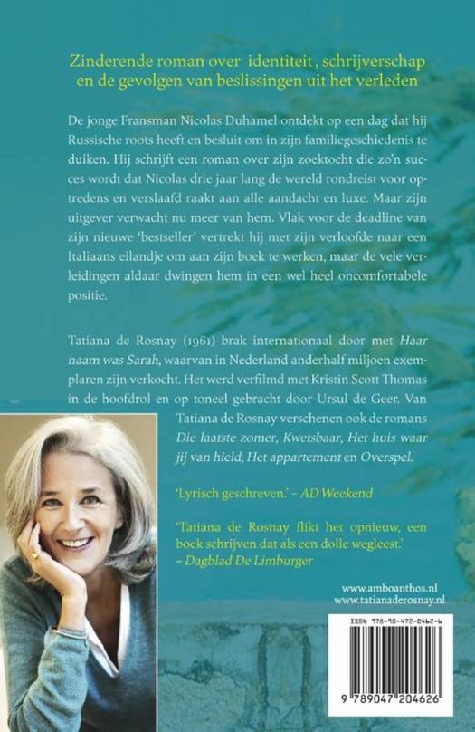 Het boek Onvoltooid verhaal van Tatiana de Rosnay vertelt over de jonge Fransman Nicolas Duhamel die op een dag ontdekt dat hij Russische roots heeft. Hij besluit om zijn zoektocht te beschrijven in een roman. Het boek wordt zo n succes dat Nicolas drie jaar lang de wereld rondreist voor optredens en verslaafd raakt aan de aandacht en luxe. Vlak voor hij zijn nieuwe `meesterwerk moet inleveren vertrekt hij met zijn verloofde naar een Italiaans eilandje om aan zijn boek te werken, maar de vele verleidingen aldaar dwingen hem in een wel heel oncomfortabele positie. Het boek Onvoltooid verhaal van Tatiana de Rosnay is een gelaagde en prachtig geschreven pageturner over familiegeheimen en wat succes met een mens kan doen.