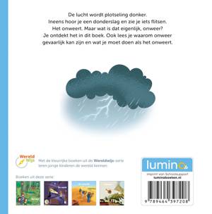 De lucht wordt plotseling donker. Ineens hoor je een donderslag en zie je iets flitsen. Het onweert. Maar wat is dat eigenlijk, onweer? Je ontdekt het in dit boek. Ook lees je waarom onweer gevaarlijk kan zijn en wat je moet doen als het onweert.