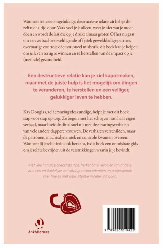 Kay Douglas, zelf ervaringsdeskundige en psychotherapeut, helpt je met dit boek stap voor stap op weg. Ze begon met het schrijven van haar eigen verhaal, maar breidde dit al snel uit met de ervaringsverhalen van vele andere dappere vrouwen. De verhalen verschilden, maar de patronen, machtsdynamiek en controle kwamen overeen. Wanneer jij jezelf hierin ook herkent, is dit boek een onmisbare gids om jezelf te bevrijden uit de verstrikkingen waarin je je bevindt.