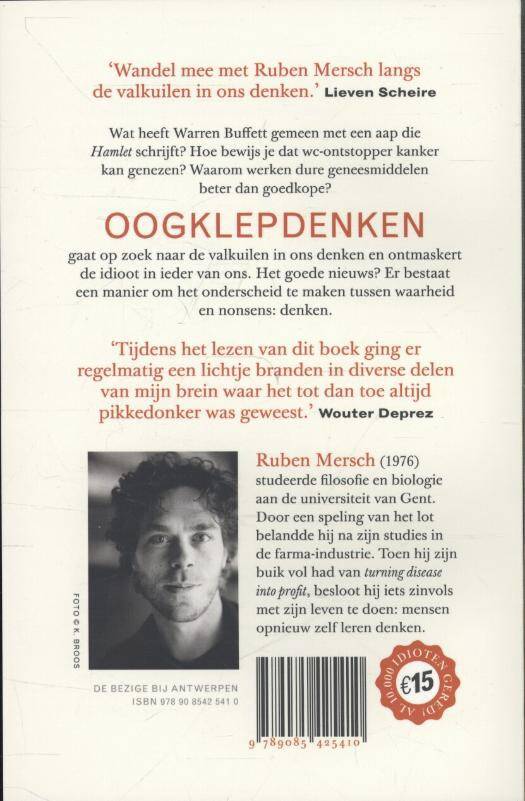 Wat heeft Warren Buffet gemeen met een aap die Hamlet schrijft? Hoe bewijs je dat wc-ontstopper kanker kan genezen? Waarom werken dure geneesmiddelen beter dan goedkope? Oogklepdenken gaat op zoek naar de valkuilen in ons denken en ontmaskert de idioot in ieder van ons. Het goede nieuws? Er bestaat een manier om het onderscheid te maken tussen waarheid en nonsens: denken.