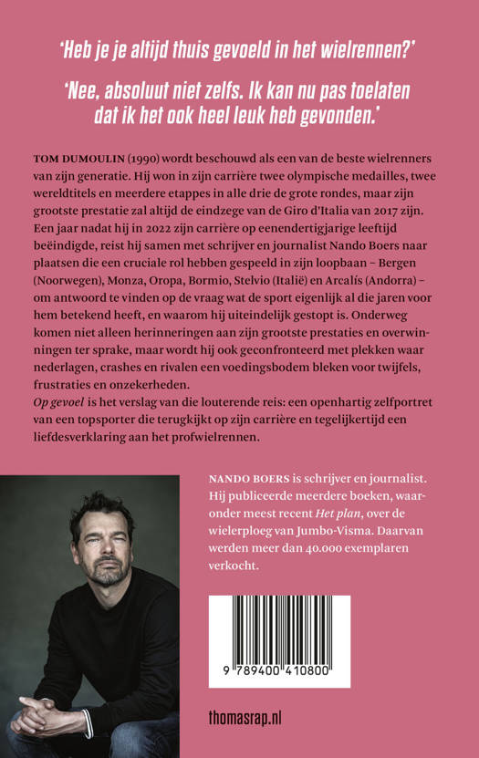 Op gevoel is het verslag van die louterende reis: een openhartig zelfportret van een topsporter die terugkijkt op zijn carrière en tegelijkertijd een liefdesverklaring aan het profwielrennen.