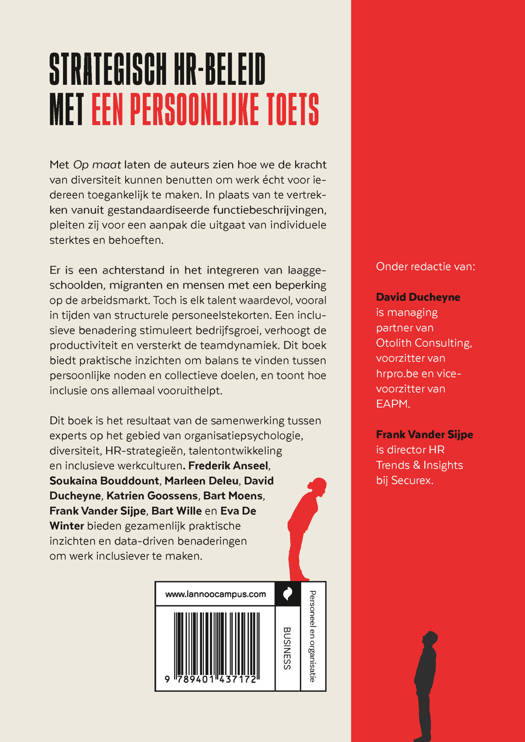 Met Op maat laten de auteurs zien hoe we de kracht van diversiteit kunnen benutten om werk écht voor iedereen toegankelijk te maken. In plaats van te vertrekken vanuit gestandaardiseerde functiebeschrijvingen, pleiten zij voor een aanpak die uitgaat van individuele sterktes en behoeften.