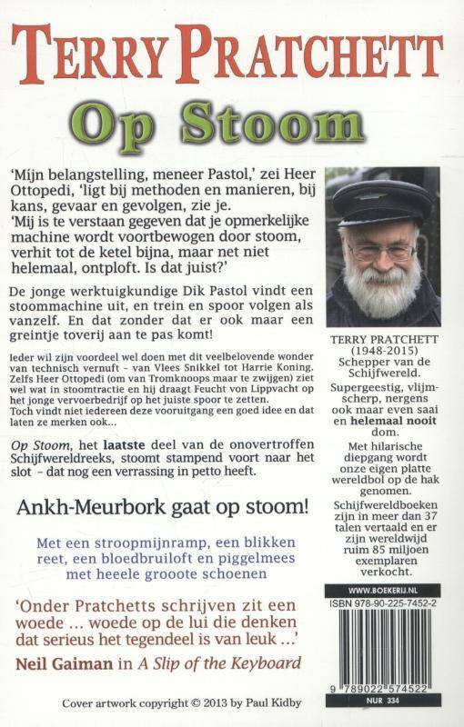 De jonge werktuigkundige Dik Pastol vindt een stoommachine uit, en trein en spoor volgen alras. Zonder dat er ook maar een greintje toverij aan te pas komt! Iedereen wil wel een graantje meepikken van dit veelbelovende wonder van technisch vernuft - van S.I.E.V. Snikkel tot Harrie Koning. Ook Heer Ottopedi voelt dat er verandering in de lucht zit en hij zet gauw Feucht von Lippvacht aan het hoofd van het razendsnel uit de grond schietende spoorwegbedrijf. Maar niet iedereen vindt vooruitgang een goed idee... Op Stoom, het nieuwste deel in de onovertroffen Schijfwereld-reeks, tjoekt stomend voort naar het slot (dat nog een verrassinkje voor ons in petto heeft). Weer boordevol oude bekenden, slimme grappen en hartverwarmende belevenissen van lieden die moeten optornen tegen vooroordeel en onbenul.