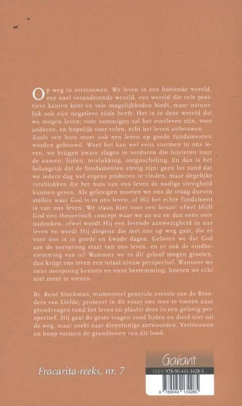 Op weg in vertrouwen. We leven in een boeiende wereld, een snel veranderende wereld, een wereld die vele positieve kanten kent en vele mogelijkheden biedt, maar natuurlijk ook zijn negatieve zijde heeft. Het is in deze wereld dat we mogen leven; voor sommigen zal het overleven zijn, voor anderen, en hopelijk voor velen, echt het leven uitbouwen. Zoals een huis moet ook een leven op goede fundamenten worden gebouwd. Want het kan wel eens stormen in ons leven, we krijgen zware slagen te verduren die luisteren naar de namen: lijden, mislukking, ontgoocheling. En dan is het belangrijk dat de fundamenten stevig zijn: geen los zand dat we iedere dag wel ergens proberen te vinden, maar degelijke rotsblokken die het huis van ons leven de nodige stevigheid kunnen geven. Als gelovigen moeten we ons de vraag durven stellen waar God is in ons leven, of Hij het echte fundament is van ons leven. We staan hier voor een keuze: ofwel blijft God een theoretisch concept waar we zo nu en dan eens over nadenken, ofwel wordt Hij een levende aanwezigheid in ons leven en wordt Hij diegene die met ons op weg gaat, die er voor ons is in goede en kwade dagen. Geloven we dat God aan de oorsprong staat van ons leven, en er ook de eindbestemming van is? Wanneer we in dit geloof mogen groeien, dan krijgt ons leven een totaal nieuw perspectief. Wanneer we onze oorsprong kennen en onze bestemming, hoeven we echt niet meer te vrezen.
