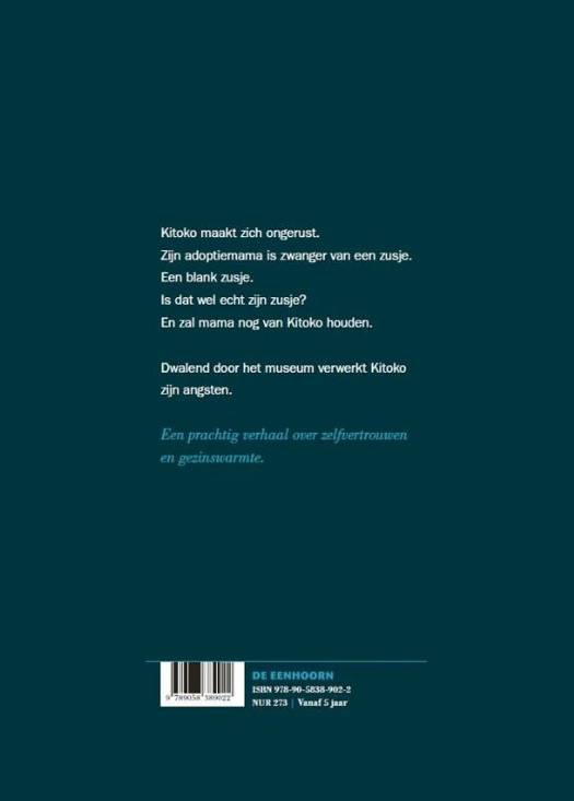 Bijzonder prentenboek over de twijfels van adoptiekinderen als ze een broer of zus krijgen. De illustraties verwijzen naar het werk van kunstenaars als Monet, Picasso, Miro,... Vanaf 5 jaar. Kitoko is geadopteerd. Nu krijgt zijn mama een dochter. Kitoko vraagt zich af of ze nog evenveel van hem zal houden. Terwijl mama een schilderij herstelt, dwaalt Kitoko rond in het museum. Hij valt in slaap en vliegt recht naar Afrika. In zijn droom vindt hij zijn zusje Ayosha. Samen trekken ze door de woestijn, het woud, de grasvlakte,… Kitoko is niet bang als zijn zus bij hem is. Plots wordt haar huid bleker. Is ze nog zijn zusje? Ben je familie als je niet op elkaar lijkt?