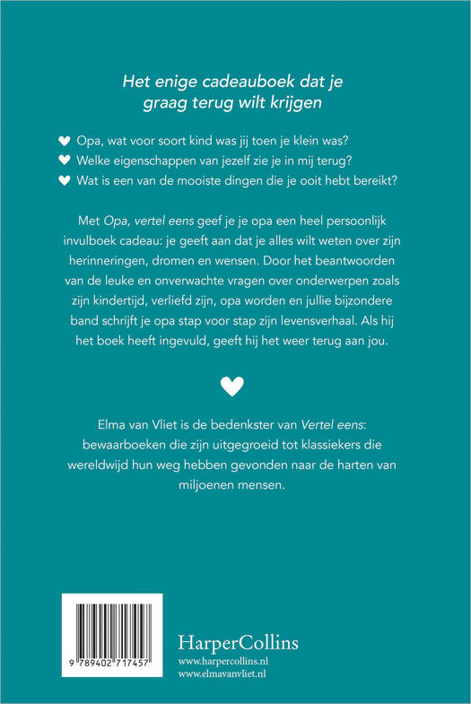 Opa, vertel eens is een compleet vernieuwd en herzien invulboek in de Vertel eens-serie van Elma van Vliet.