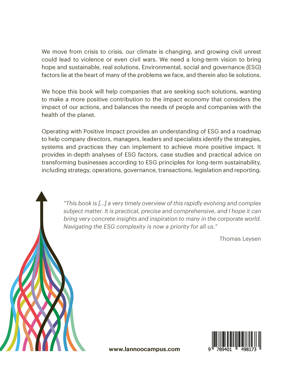 We move from crisis to crisis, our climate is changing, and growing civil unrest could lead to violence or even civil war(s). We need a longer-term vision to bring hope and embed sustainable, real solutions in the way we live and do business. This book is a roadmap to help companies achieve a more positive impact, creating an 'impact economy' that considers the impact of our actions, and balances the needs of people and companies with the health of the planet. It presents practical guidance and insights on how to transform a business according to ESG principles, for long-term sustainability.