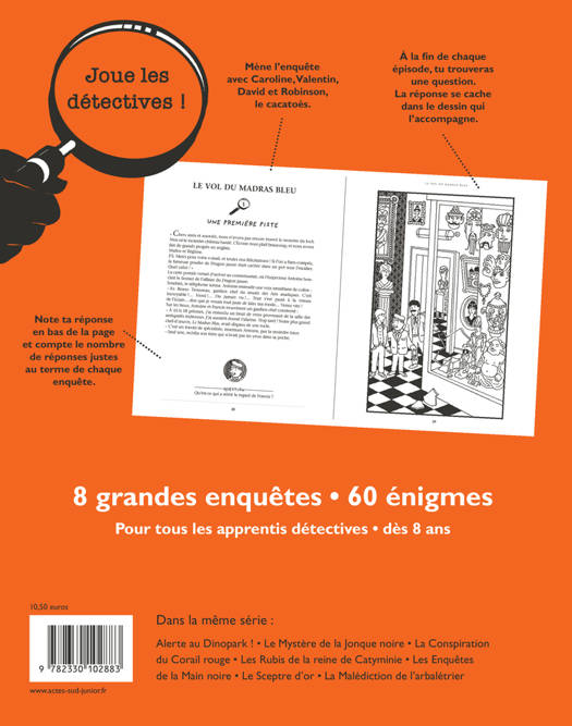 Contrefaçons de monnaies anciennes, vol d'une satuette dans un musée ou affaire d'espionnage : 4 grandes enquêtes, 60 énigmes à résoudre en trouvant l'indice caché dans l'image. Au lecteur d'être aussi perspicace que les enquêteurs de l'agence Malice et Réglisse. La réédition en format agrandi d'un long-seller» de la série vendu à 155 000 exemplaires!
