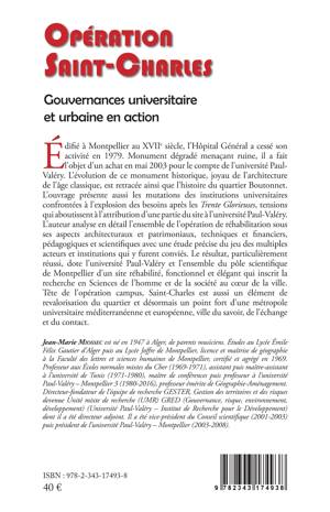 Edifié à Montpellier au XVIIe siècle, l'Hôpital Général a cessé son activité en 1979. Monument dégradé menaçant ruine, il a fait l'objet d'un achat en mai 2003 pour le compte de l'université Paul-Valéry. L'auteur analyse en détail l'ensemble de l'opération de réhabilitation sous ses aspects architecturaux et patrimoniaux, techniques et financiers, pédagogiques et scientifiques. Le résultat, particulièrement réussi, dote l'université et l'ensemble du pôle scientifique de Montpellier d'un site réhabilité, fonctionnel et élégant qui inscrit la recherche en Sciences de l'homme et de la société au coeur de la ville.
